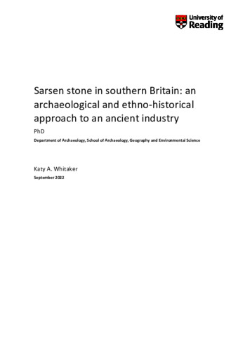 Whitaker, K. A. (2023) Sarsen stone in southern Britain: an archaeological and ethno-historical approach to an ancient industry. PhD thesis, University of Reading. doi: 10.48683/1926.00112469