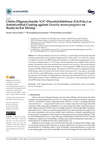 Chitin oligosaccharide N,N′-diacetylchitobiose (GlcNAc2) as antimicrobial coating against listeria monocytogenes on ready-to-eat shrimp.