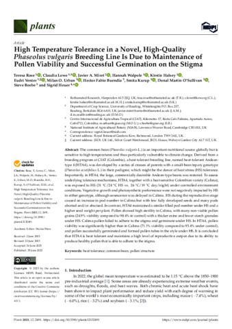 High temperature tolerance in a novel, high-quality phaseolus vulgaris breeding line is due to maintenance of pollen viability and successful germination on the stigma.