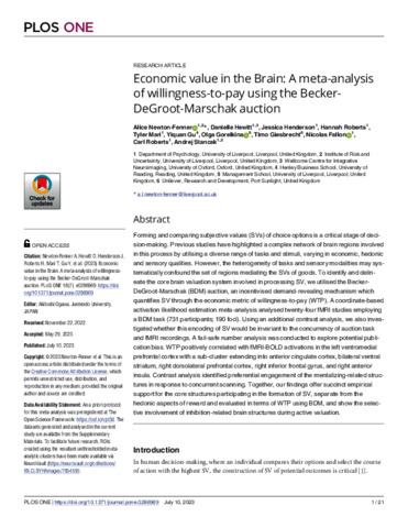 Economic value in the brain: a meta-analysis of willingness-to-pay using the Becker-DeGroot-Marschak auction.