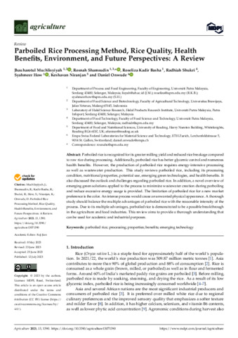 Parboiled rice processing method, rice quality, health benefits, environment, and future perspectives: a review.