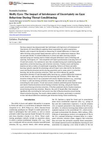 Shifty eyes: the impact of intolerance of uncertainty on gaze behaviour during threat conditioning.