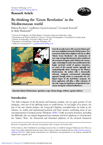 From the seventh century AD, successive Islamic polities were established around the Mediterranean. Historians have linked these caliphates with the so-called ‘Islamic Green Revolution’—the introduction of new crops and agricultural practices that transformed the economies of regions under Muslim rule. Increasingly, archaeological studies have problematised this largely text-based model of agrarian innovation, yet much of this research remains regionally and methodologically siloed. Focusing on the Western Mediterranean, the authors offer a theoretically informed, integrated environmental archaeology approach through which to contextualise the ecological impact of the Arab-Berber conquests. Its future application will allow a fuller evaluation of the scale, range and significance of agricultural innovations during the ‘medieval millennium’.