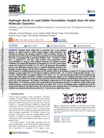 (26) Ibaceta-Jaña, J.; Chugh, M.; Novikov, A. S.; Mirhosseini, H.; Kühne, T. D.; Szyszka, B.; Wagner, M. R.; Muydinov, R. Do Lead Halide Hybrid Perovskites Have Hydrogen Bonds? J. Phys. Chem. C 2022, 126, 16215-16226. DOI: 10.1021/acs.jpcc.2c02984.