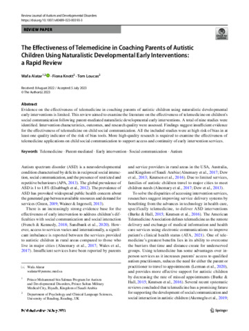 The Effectiveness of Telemedicine in Coaching Parents of Autistic Children Using Naturalistic Developmental Early Interventions: a Rapid Review.