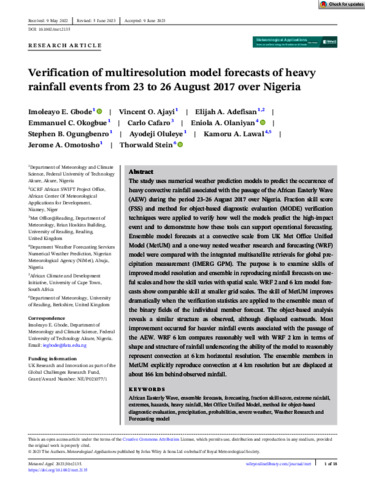 Verification of multiresolution model forecasts of heavy rainfall events from 23 to 26 August 2017 over Nigeria.