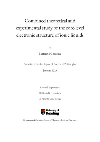 Gousseva, E. (2023) Combined theoretical and experimental study of the core-level electronic structure of ionic liquids. PhD thesis, University of Reading. doi: 10.48683/1926.00112902