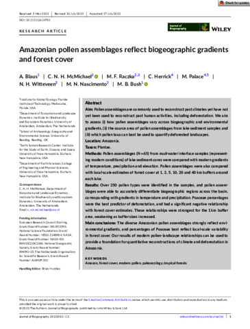 Amazonian pollen assemblages reflect biogeographic gradients and forest cover.
