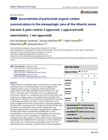 Uncertainties of particulate organic carbon concentrations in the mesopelagic zone of the Atlantic ocean.