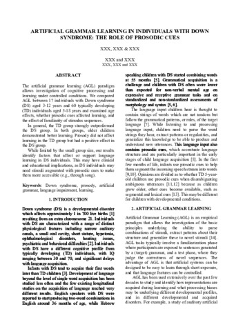 | Uncontrolled Keywords | Down syndrome, prosody, artificial grammar, language impairment, learning |