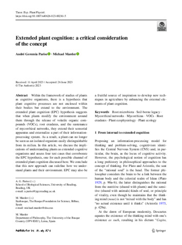 Parise, A. G. and Marder, M. (2023) Extended plant cognition: a critical consideration of the concept. Theoretical and Experimental Plant Physiology. ISSN 2197-0025 doi: 10.1007/s40626-023-00281-5