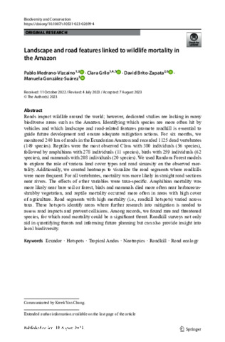 Landscape and road features linked to wildlife mortality in the Amazon.
