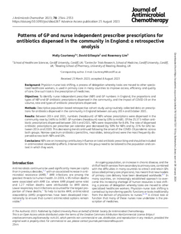 Patterns of GP and nurse independent prescriber prescriptions for antibiotics dispensed in the community in England: a retrospective analysis.
