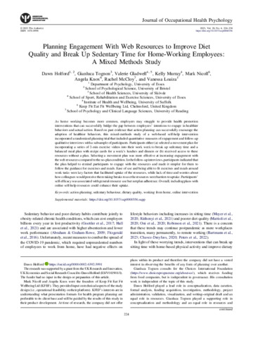 Planning engagement with web resources to improve diet quality and break up sedentary time for home-working employees: a mixed methods study.