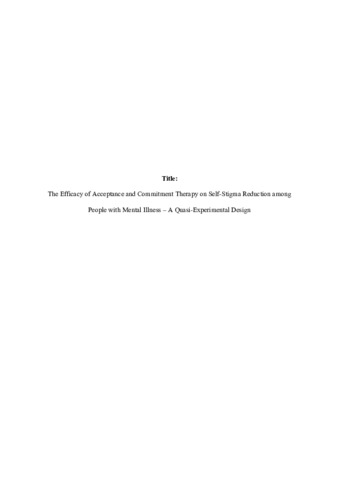 The efficacy of acceptance and commitment therapy on self-stigma reduction among people with mental illness: a quasi-experimental design.