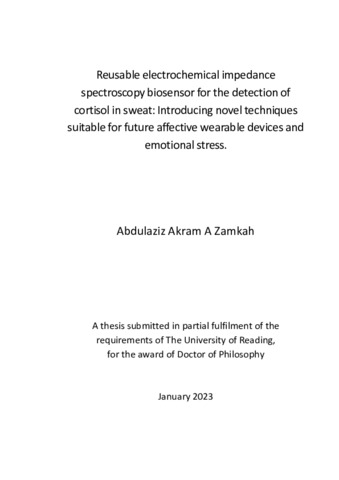 Zamkah, A. A. A. (2023) Reusable electrochemical impedance spectroscopy biosensor for the detection of cortisol in sweat: Introducing novel techniques suitable for future affective wearable devices and emotional stress. PhD thesis, University of Reading. doi: 10.48683/1926.00113035