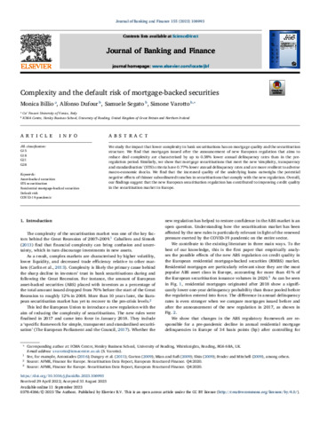 Billio, M., Dufour, A. orcid id iconORCID: https://orcid.org/0000-0003-0519-648X, Segato, S. and Varotto, S. orcid id iconORCID: https://orcid.org/0000-0001-5328-5327 (2023) Complexity and the default risk of mortgage-backed securities. Journal of Banking & Finance, 155. 106993. ISSN 1034-3040 doi: 10.1016/j.jbankfin.2023.106993