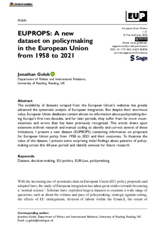 EUPROPS: a new dataset on policymaking in the European Union 1958-2021.