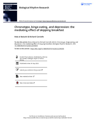 Chronotype, binge-eating, and depression: the mediating effect of skipping breakfast.