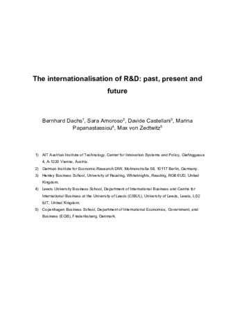 Dachs, B., Amoroso, S., Castellani, D. orcid id iconORCID: https://orcid.org/0000-0002-1823-242X, Papanastassiou, M. and von Zedtwitz, M. (2023) The internationalisation of R&D: past, present and future. International Business Review, 33 (1). 102191. ISSN 0969-5931 doi: 10.1016/j.ibusrev.2023.102191
