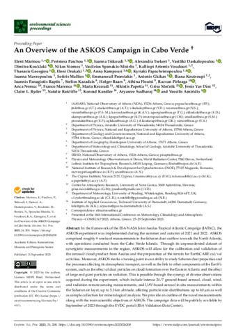In the framework of the ESA-NASA Joint Aeolus Tropical Atlantic Campaign (JATAC), the ASKOS experiment was implemented during the summer and autumn of 2021 and 2022. ASKOS comprised roughly 9 weeks of measurements in the Saharan dust outflow towards the North Atlantic, with operations conducted from the Cabo Verde Islands. Through its unprecedented dataset of synergistic measurements in the region, ASKOS will allow for the calibration and validation of the aerosol/cloud product from Aeolus and the preparation of the terrain for EarthCARE cal/val activities. Moreover, ASKOS marks a turning point in our ability to study Saharan dust properties and the processes affecting its atmospheric transport, as well as the link to other components of the Earth’s system, such as the effect of dust particles on cloud formation over the Eastern Atlantic and the effect of large and giant particles on radiation. This is possible through the synergy of diverse observations acquired during the experiment, which include intense 24/7 ground-based aerosol, cloud, wind, and radiation remote sensing measurements, and UAV-based aerosol in situ measurements within the Saharan air layer, up to 5.3 km altitude, offering particle size-distributions up to 40 μm as well as sample collection for mineralogical analysis. We provide an outline of the novel measurements along with the main scientific objectives of ASKOS. The campaign data will be publicly available by September of 2023 through the EVDC portal (ESA Validation Data Center).
