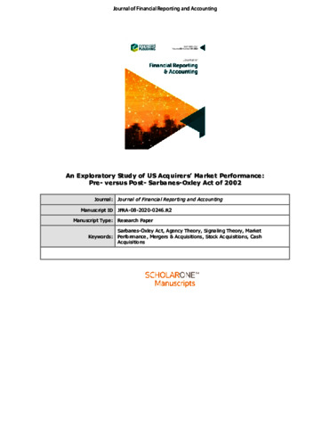 An exploratory study of US acquirers’ market performance: pre- versus post- Sarbanes-Oxley act of 2002