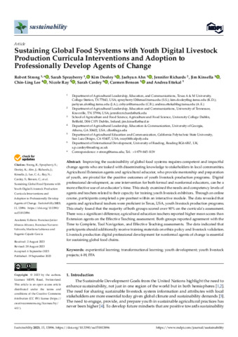 Sustaining global food systems with youth digital livestock production curricula interventions and adoption to professionally develop agents of change.