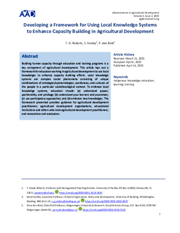 Developing a framework for using local knowledge systems to enhance capacity building in agricultural development.