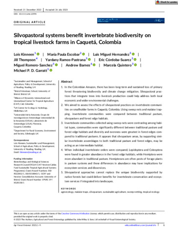 Silvopastoral systems benefit invertebrate biodiversity on tropical livestock farms in Caquetá, Colombia.