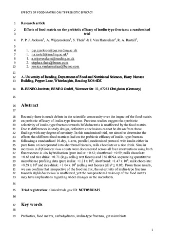 Effects of food matrix on the prebiotic efficacy of inulin-type fructans: a randomised trial.