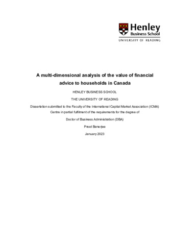 Banerjee, P. (2023) A multi-dimensional analysis of the value of financial advice to households in Canada. DBA thesis, University of Reading. doi: 10.48683/1926.00113534