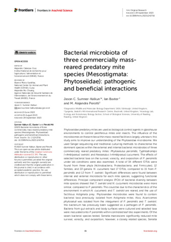 Bacterial microbiota of three commercially mass-reared predatory mite species (Mesostigmata: Phytoseiidae): pathogenic and beneficial interactions.