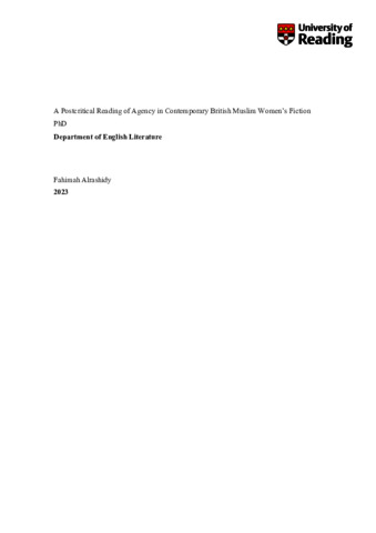 Alrashidy, F. (2023) A postcritical reading of agency in contemporary British Muslim women’s fiction. PhD thesis, University of Reading. doi: 10.48683/1926.00113634