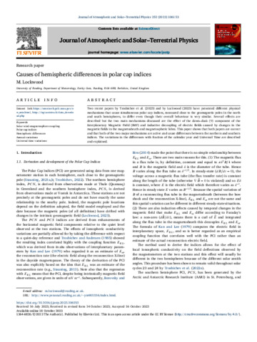 Causes of hemispheric differences in polar cap indices.