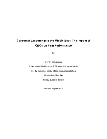Abouzeenni, A. (2023) Corporate leadership in the Middle East: the impact of CEOs on firm performance. DBA thesis, University of Reading. doi: 10.48683/1926.00113702