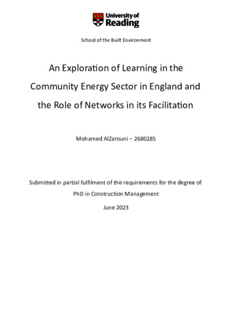 Alzarouni, M. (2023) An exploration of learning in the community energy sector in England and the role of networks in its facilitation. PhD thesis, University of Reading. doi: 10.48683/1926.00113703