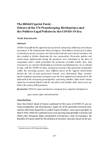 The bifold Cypriot facet: echoes of the UN peacekeeping mechanisms and the politico-legal policies in the COVID-19 era.