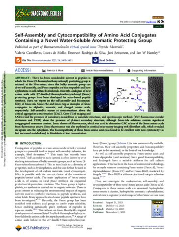 Self-assembly and cytocompatibility of amino acid conjugates containing a novel water-soluble aromatic protecting group.