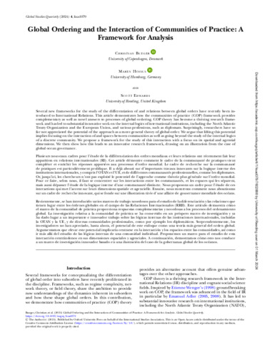 Bueger, C., Hofius, M. and Edwards, S. orcid id iconORCID: https://orcid.org/0000-0003-1046-2519 (2024) Global ordering and the interaction of communities of practice: a framework for analysis. Global Studies Quarterly, 4 (1). ksad079. ISSN 2634-3797 doi: 10.1093/isagsq/ksad079