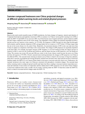 (Zhang, M., Dong, B., Schiemann, R. et al. Summer compound heatwaves over China: projected changes at different global warming levels and related physical processes. Clim Dyn (2023). https://doi.org/10.1007/s00382-023-07001-4)