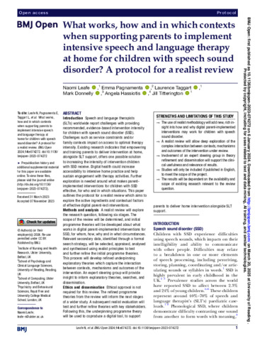 27. McFaul H, Mulgrew L, Smyth J, et al. Applying evidence to practice by increasing intensity of intervention for children with severe speech sound disorder: a quality improvement project. BMJ open Qual. 2022;11(2).