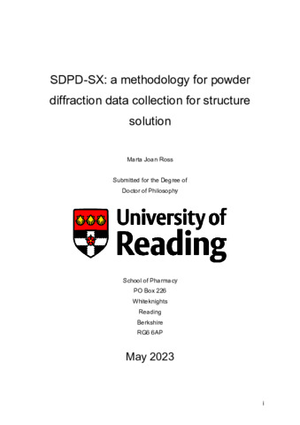Ross, M. J. (2023) SDPD-SX: a methodology for powder diffraction data collection for structure solution. PhD thesis, University of Reading. doi: 10.48683/1926.00113931