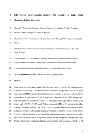Whey–pectin microcapsules improve the stability of grape marc phenolics during digestion