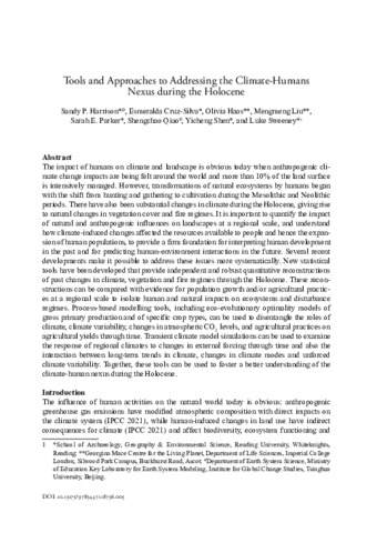 Tools and approaches to addressing the climate-humans nexus during the Holocene.