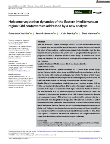 Holocene vegetation dynamics of the Eastern Mediterranean region: old controversies addressed by a new analysis.