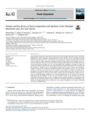Climate and fire drivers of forest composition and openness in the Changbai Mountains since the Late Glacial.