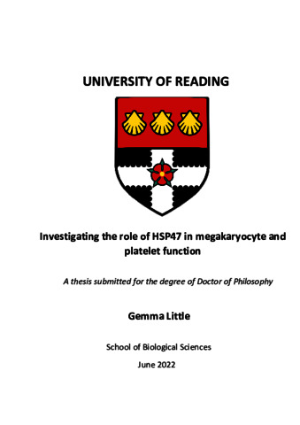 Little, G. (2022) Investigating the role of HSP47 in megakaryocyte and platelet function. PhD thesis, University of Reading. doi: 10.48683/1926.00114038