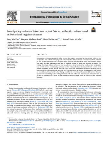 Investigating reviewers’ intentions to post fake vs. authentic reviews based on behavioral linguistic features.