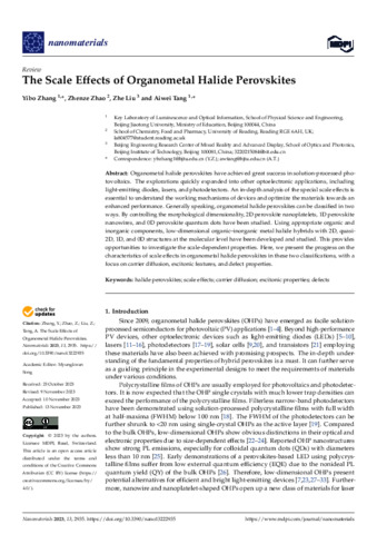 Zhang, Y., Zhao, Z., Liu, Z. and Tang, A. (2023) The scale effects of organometal halide perovskites. Nanomaterials, 13 (22). 2935. ISSN 2079-4991 doi: 10.3390/nano13222935