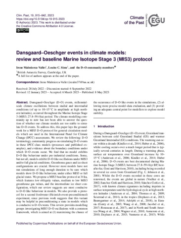 Dansgaard–Oeschger events in climate models: review and baseline Marine Isotope Stage 3 (MIS3) protocol.